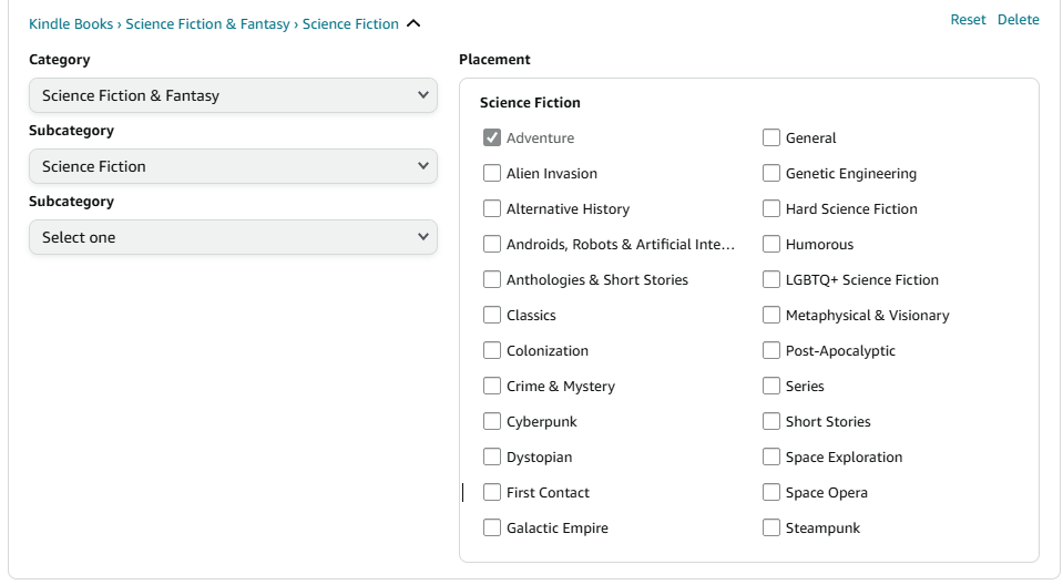 So, the three categories I use now are “Science Fiction: Adventure,” “Fantasy: Historical,” and “Science Fiction: Alien Invasion.” And the category Amazon settled on was: “Fantasy: LGBTQ+ Fantasy.” I don’t think that’s exactly right, but I’m not fighting it because queerness is absolutely central to the overarching narrative, and certain people who are looking for that might very well be satisfied, while anyone who is turned off by it being categorized as LGBTQ+ would not be happy with the novel, anyway.